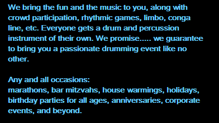 Our drum circle is a group of 3 or 4 professional